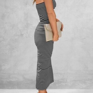 Women Summer Bodycon Maxi Tube Dress Ribbed Strapless Side Slit Long Going Out Casual Elegant Party Dresses