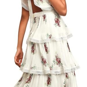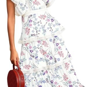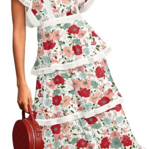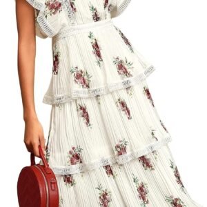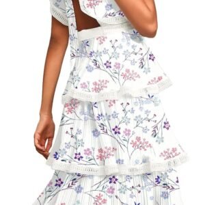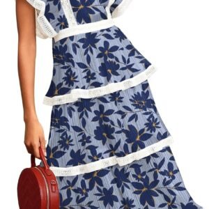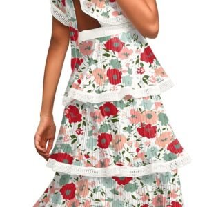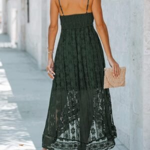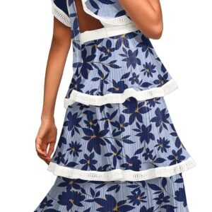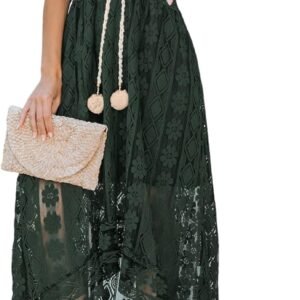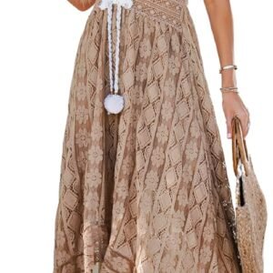 Women Lace Dresses Boho Tassel V-Neck Flare Ruffle Adjustable Straps Beach Summer Maxi Dress
