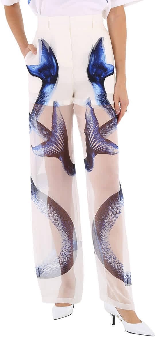 Ladies Mermaid Tail Print Mulberry Silk Trousers, Size 4 (US Size 2)