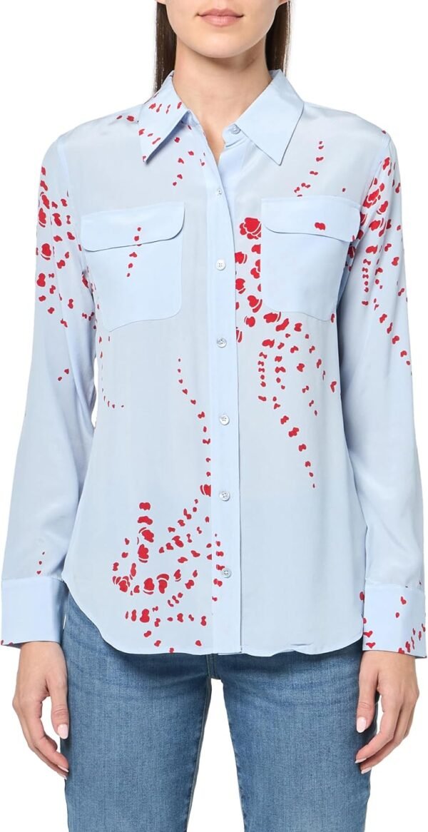 - Oversized ‘70s collar, exaggerated cuffs, and pocketless in luminous silk.