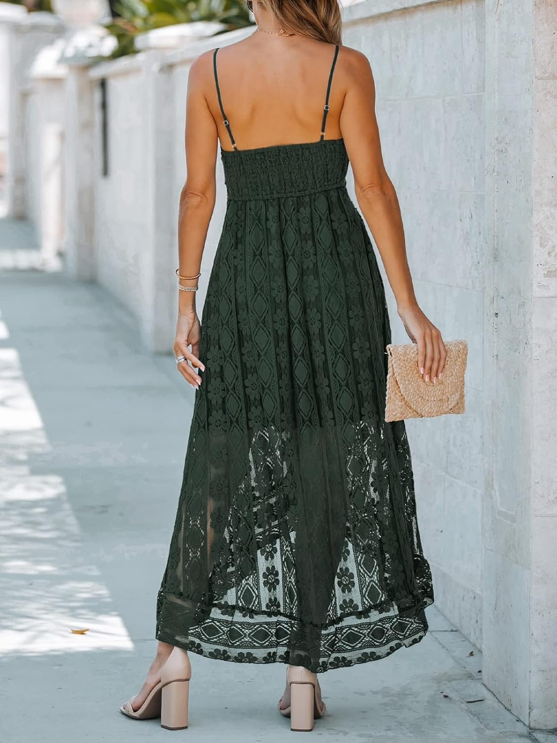 • Design: You can not miss this boho v-neck lace Slip dress in summer. Our dress features adjustable straps, smocked design, tassel, lace appliques, v neck, sleeveless, a line and maxi length. It is perfect for a beach vacation.