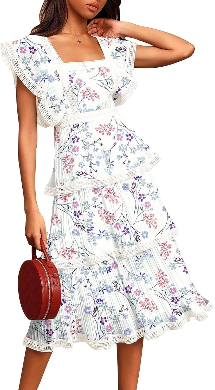 • Style:midi dress for women、off the shoulder dress、boho floral dress、ruffle dress、womens midi dresses,flower printed dress,it’s a summer dress for vacation with friends.