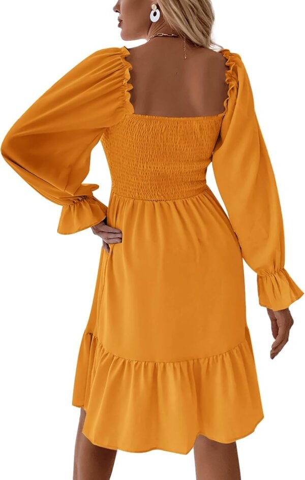 • Features: square neck, shirred bust, ruffle swing,lantern long sleeve, elegant design, flowy mini dress.