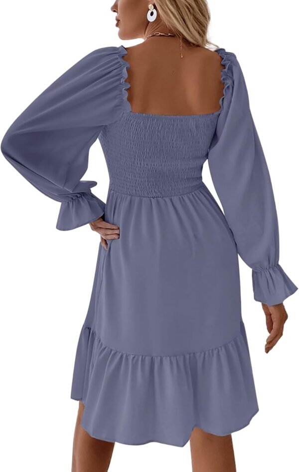 • Features: square neck, shirred bust, ruffle swing,lantern long sleeve, elegant design, flowy mini dress.