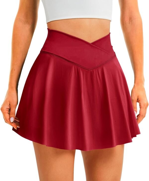 • 【Crossover Athletic Skirt】-This crossover high waisted golf skorts skirts are designed with a V-cut elastic wide waistband to accentuate your waistline and hips, high rise fit for tummy control, no rolling down